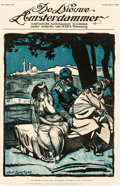 Bijvoegsel van de Nieuwe Amsterdammer nummer 88 van 2 september 1916. Roemenïe werpt zich tusschen Turkije en de centralen de Roemeniër: Met uw verlof kom ik tusschen u in.